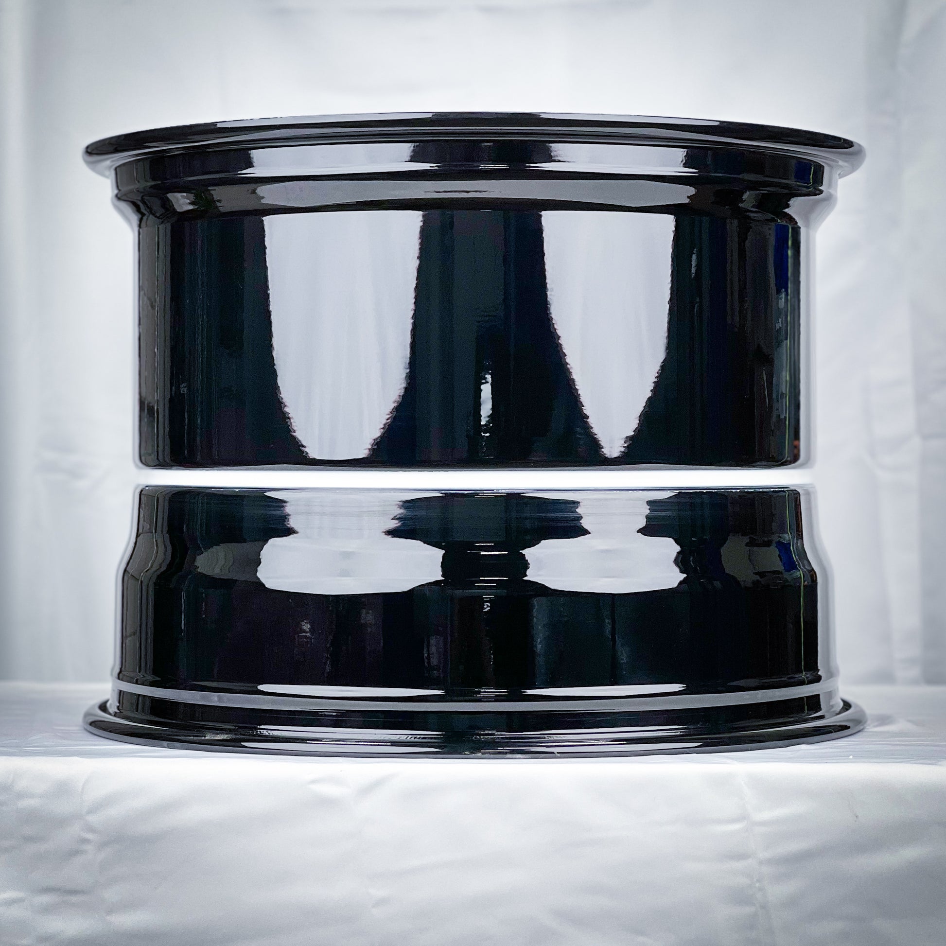 Finish Shown: Gloss Black center, Gloss Black outer lip, Gloss Black inner, with custom White hardware.